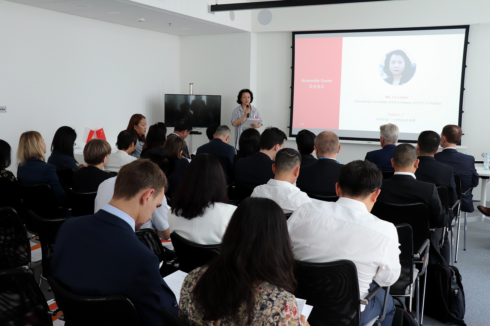 2018年6月7日,刘丽娟参赞应邀出席由贸促会波兰代表处和普华永道联合主办的“波兰税务审计应对与投资项目介绍”研讨会并致辞,潮州市访波经贸代表团及中资企业代表近40人参加了会议。